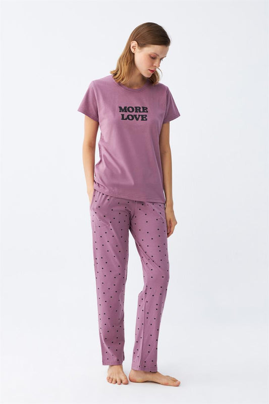 Kadın Mor Yıldız Desenli Kısa Kol Pijama Takımı